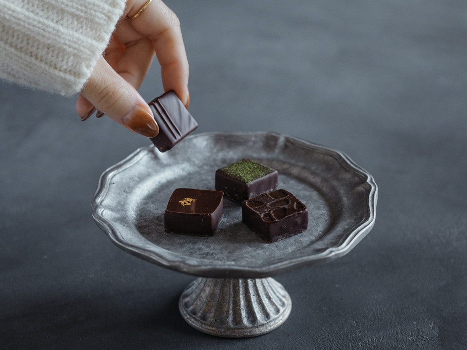 フレーバーは、「アールグレイ・オランジュ」や「マンゴー・パッション」などの相性抜群の組み合わせを始め、「すだち・カモミール」など、他にはない珍しいものも。噛むたびに広がるショコラの芳醇な甘さと、各フレーバーとのマリアージュがたまらない逸品!