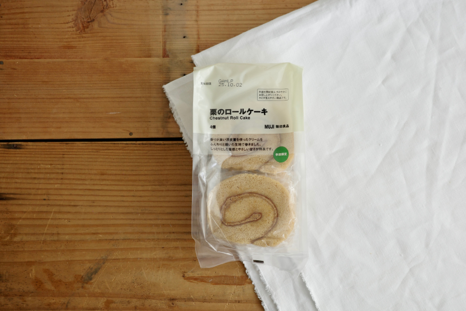 季節ごとにロールケーキがラインアップされている無印良品のスイーツの中でも定番人気の商品。香りが引き立つ渋皮栗入りソースが増量されて、より栗の風味が増したしっとりタイプのロールケーキ。