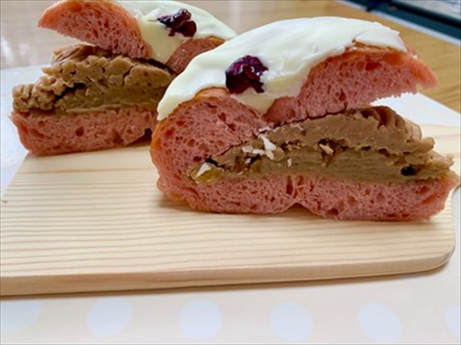 私の大好きなモンブランをなんとなんと…ベーグルサンドにしていただきました! そしてそのベーグル名は「胸きゅんモンブランベーグル」