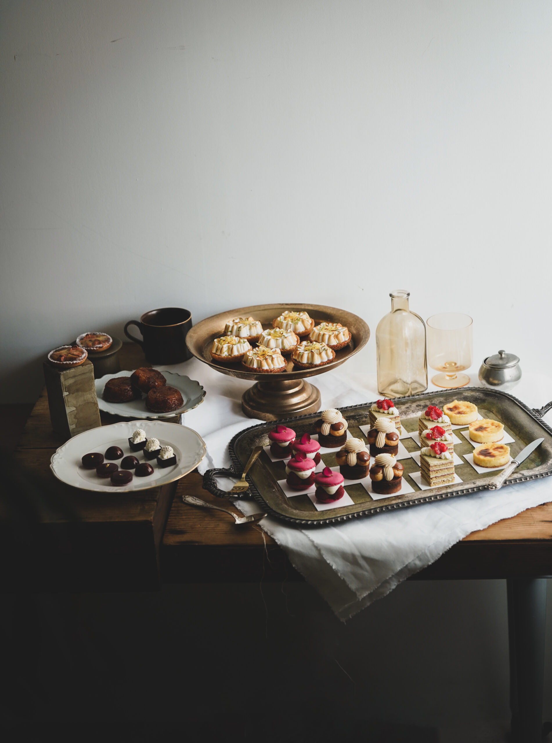 それぞれのシェフのミニャルディーズ(小さ目のケーキ)やミニタルト、実に焼き菓子、ボンボンショコラなどを予定。写真のメニューにプラスアルファ増える予定です。
