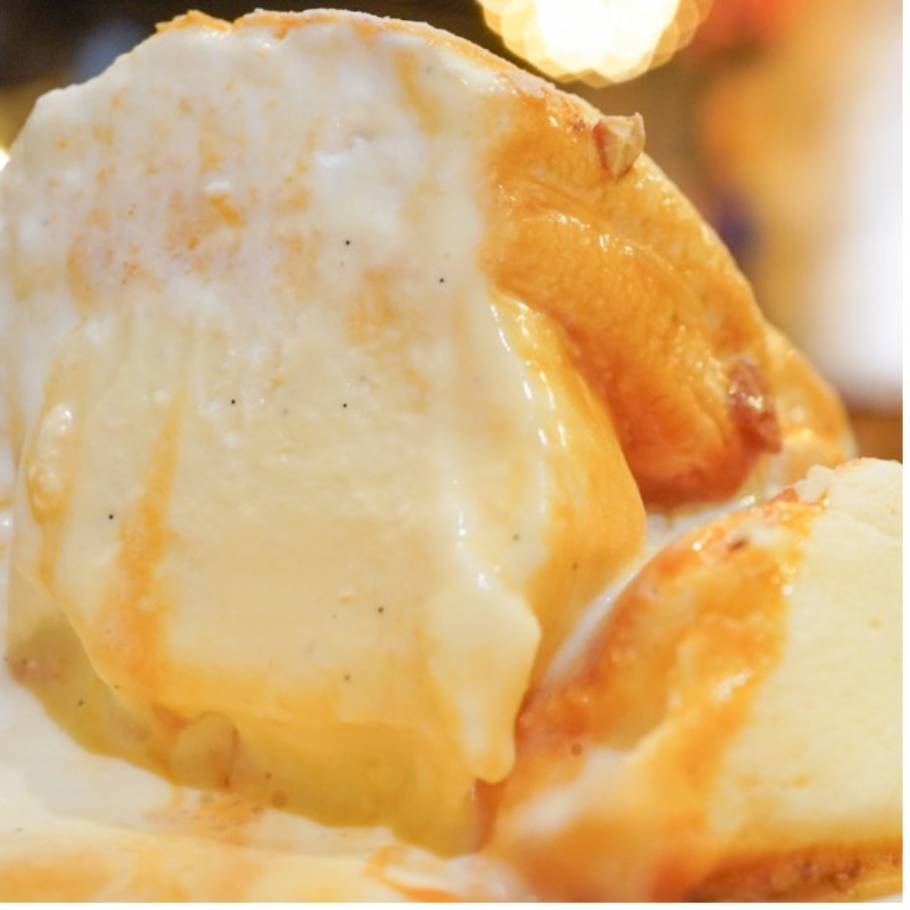 ナッツとキャラメルはクリームとパンケーキの味に深みを演出。