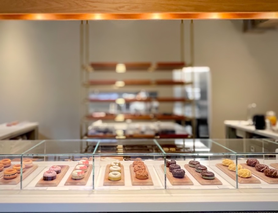緑豊かなエントランスを抜けると、一つ一つがアートを見ているかのような、美しいドーナツのショーケース。