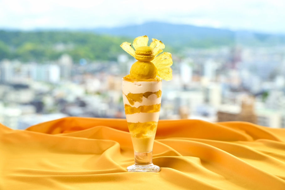 宮崎県産の完熟マンゴーを存分に楽しめる「マンゴーパフェ」。マンゴーの濃厚な甘みと香りがより引き立つように、生クリームではなく、清涼感溢れるヨーグルトムースが重ねられています。トップには真夏の太陽を想わせる、パリッとした食感のパイナップルのドライチップスが。涼やかさも兼ね備えたパフェはこれからの季節にぴったり。