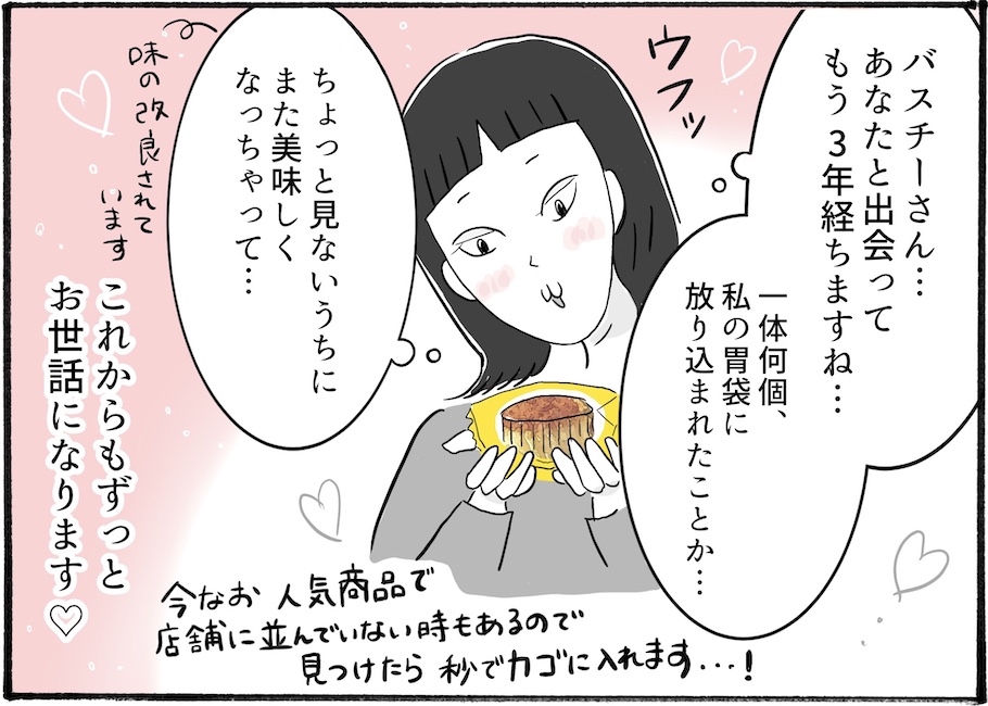 日雇い労働の疲れた心と体を癒してくれるもの。それが「プチプラスイーツ」。柿ノ種さんが愛するスイーツの1つ目は、コンビニスイーツ界でも殿堂入りのおいしさを誇る「バスチー」をご紹介!