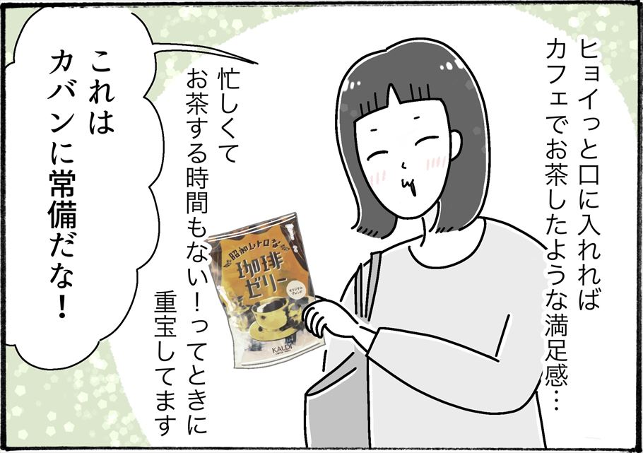 カルディはコーヒーが人気のお店だけに、それを使ったコーヒーゼリーはおいしいこと間違いなしですよね。持ち運びやすいサイズなので、お仕事中ちょっと小腹がすいたときや、お出かけのお供にしてもいいかも。