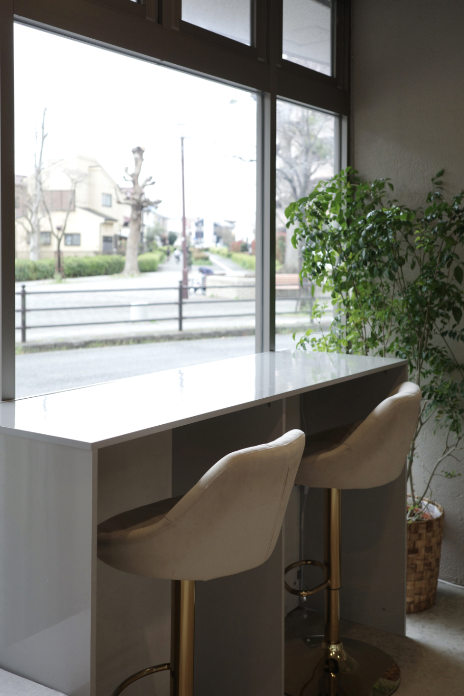 八千代中央駅から徒歩約4分ほどにある「ATELIER Y(アトリエ ワイ)」。都会の喧騒を忘れるかのような住宅街に佇み、目の前には公園が広がります。