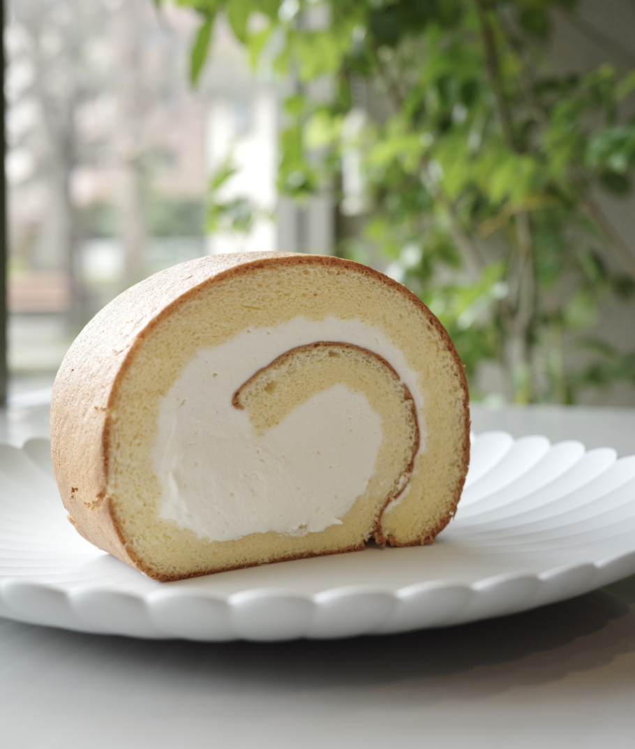 三つ目は、特注の窯から作られる「プレミアムロール」。和三盆糖と三温糖をブレンドしたコクのある味わいの生クリーム、はちみつが入ったふわふわのスフレロールが絶妙に混じり合う味わい。