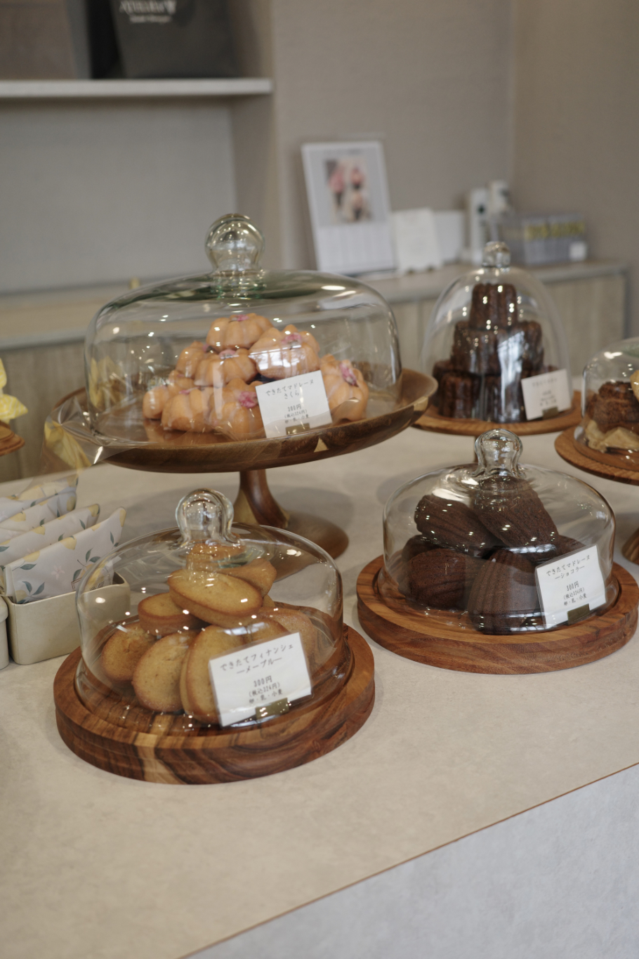 マドレーヌやカヌレなどの焼きっぱなしの焼き菓子がずらりと並ぶ
