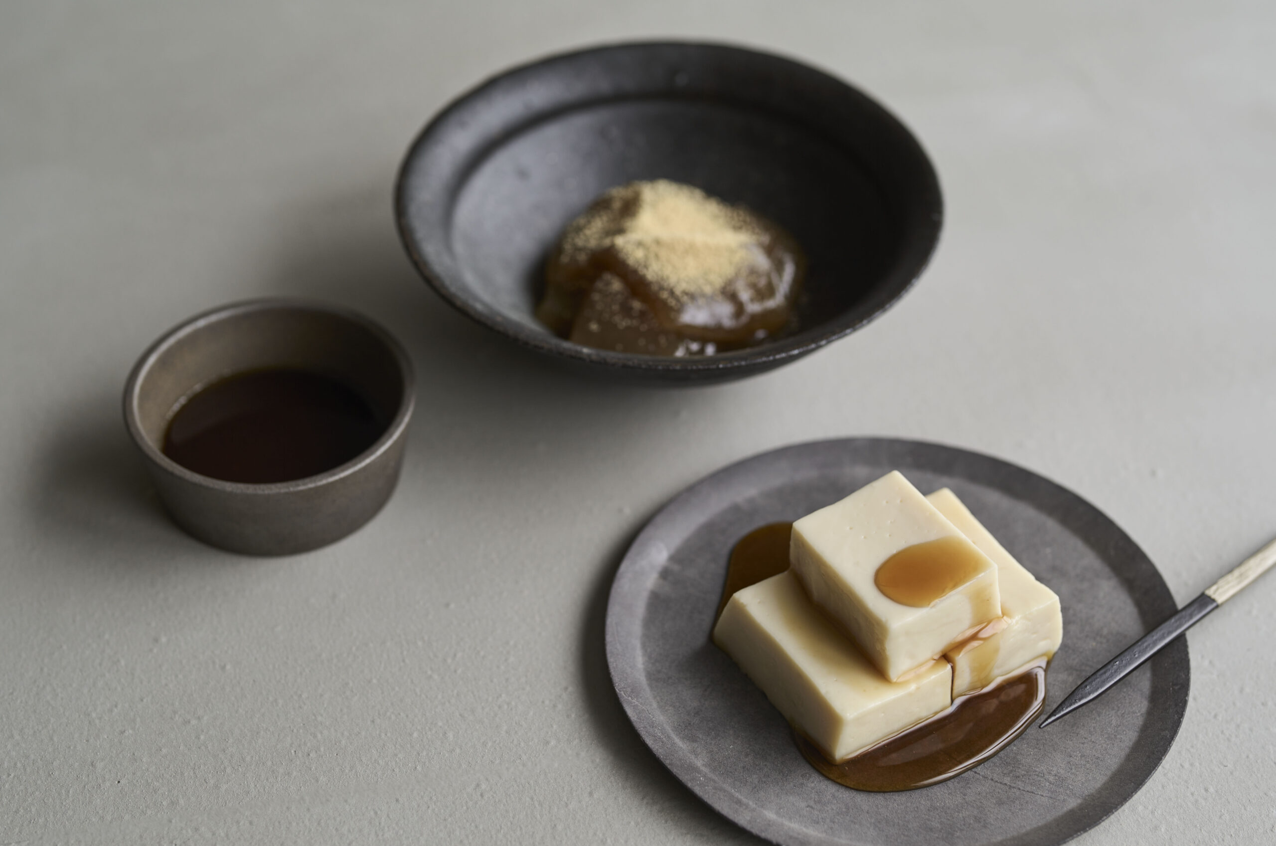 そんな「赤坂おぎ乃」の献立の締めとして提供される、椰子や和三盆を贅沢に使った和のジェラートをはじめ、鮮度が大切な練り物の黒糖わらび餅や練乳葛豆腐においても全て手作りで用意され、特に目の前で焼き上げられライブ感ある新感覚のどらやきが話題に。料理人・荻野聡士氏の挑戦から生まれる、和の伝統と洋の織りなす新しいお菓子の世界が、今老若男女問わず多くの人々に注目されています。